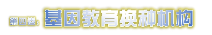第四卷:基因教育换种机构,简称:换种机构。简述:宇宙主宰用新生命更换人种。更换人种的方法是用基因教育、素质教育、生命能量教育来提高人的本性以达把旧生命人种更换成新生命人种的目的。制定世界教育法就是在人类世界上统一生命教育教材、教案,在中国创建妊前基因学院,本院负责培育孕育100万新生命人种。创建生命基因法委员会,为改变人类基因将合化分争更改成分化合一的本性以达世界和平。