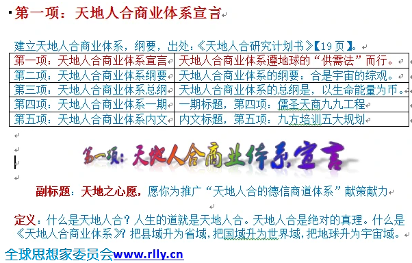第一项:天地人合商业体系宣言 天地人合商业体系遵地球的“供需法”而行。