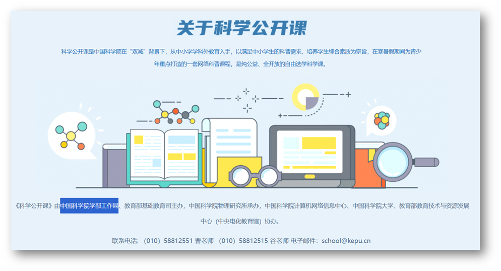 在寒暑假期间为青少年重点打造的一套网络科普课程,是纯公益、全开放的自由选学科学课。