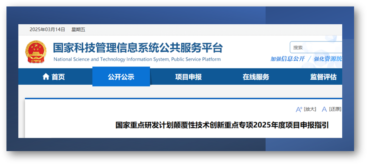 国家重点研发计划颠覆性技术创新重点专项2025年度项目申报指引,简称:颠覆性技术申报指引