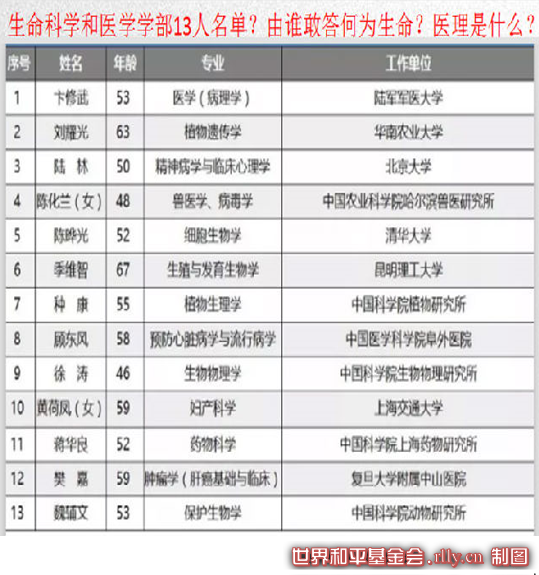 全球思想家委员会,请教:中国科学院院士——生命科学和医学学部13人。