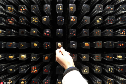 3月9日,一名工作人员在野生生物种质资源库博物馆内查看种子标本。(图片来源东方IC)