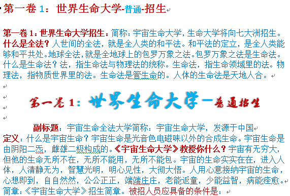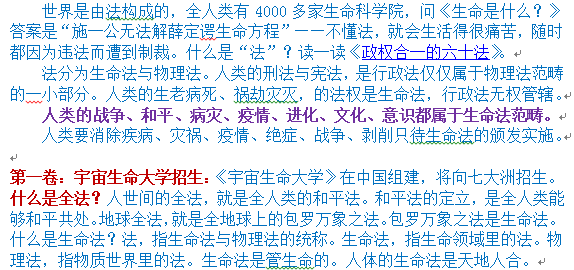 人类的生命权能者的诞生,是和平人类的诞生。和平人类的诞生是自然迁变的必然。人类争争杀杀数万年,能使自己得到什么呢?哪一位权能者发动了战争,又真正达到了制止的目的?人的心若静思回想,独断专横的分封就应该消灭。以和平治理天下,以大同合成联合国,以仁爱解救处于水深火热中的人类。