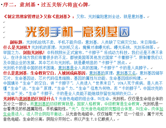 什么是意刻基:人类生命教育空白,人被旧意识“刻”成病基因。意刻基的原理:意刻基又名:意刻基因储存芯片,生命基因法,