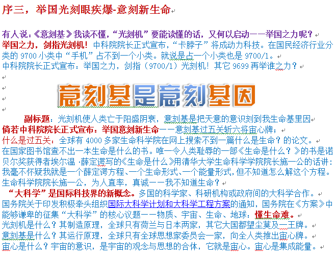 一旦启动与实施的《意刻基工程》就解密了国务院征集的物质、宇宙、生命、地球?