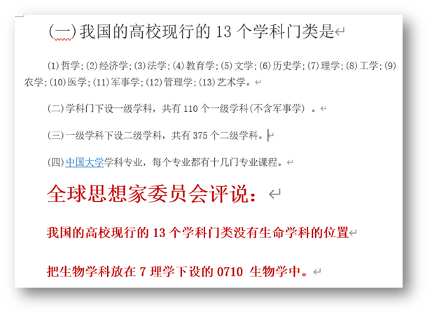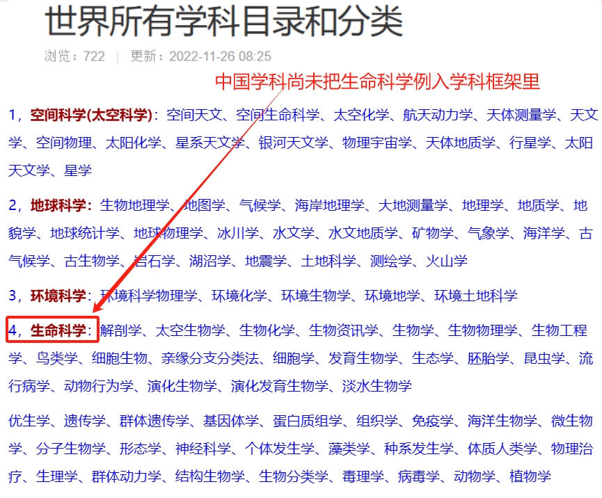我国的高校现行的13个学科门类没有生命学科的位置