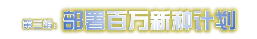 第二编:部署百万新种计划,简称:百万新种。简述:更换人种出于宇宙核心的部署与统筹。古今中外大道千古全人类都囿于27字旧世界观[i],而今迈步反向越。部署各国、智库、大学、社区提高精神素质、生命能量、人格格位。引爆公平[ii]经济、点燃正义名流、启动妊前九九机制,创建爱合能量团,实施部署百万新种计划。