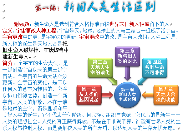 人类的返本还原靠自然大法作导引,新生命入体作帮助去实现。人类的新纪元即将到来,新生命人类即将诞生。