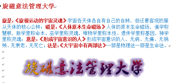 人体是个小宇宙,人体结构是宇宙体的生命机制。人体的生命机制是个谜,千古至今未被揭开。真理在人体上显明,包含了无比的价值。人是世间第一可宝贵的物体。世间的一切事物除人以外,没有一件称得上是奇迹。人物的设计与构造,完全是按照宇宙的生命原理与规律而来的。人的设计师是宇宙,宇宙又是制造人的工厂。宇宙把人的大脑设计成一台信息仪器。宇宙把人的心脏设计成一台变压器。宇宙把人的肝脏设计成一座能量储藏库。宇宙把人的肺设计成一台空气分离仪(器)。宇宙把人的肾设计成一台阴阳平衡仪。宇宙把人的脾设计成一把食欲剑。宇宙把人的肠设计成一条食物废墟输送排污管线。宇宙把人的胃设计成一座食物加工分解厂。宇宙把人的胆设计成一个激素储存罐。宇宙把人的躯壳设计成一座豪华的屋宇,并在屋宇内安设了功能齐全的水、电、气、温、色、光、磁的装置。宇宙把人体的形象设计成宇宙的模式,运转自如。宇宙把人体的所有装置用神经线相联、信息线相通、气息线相融。宇宙把人体内的经络革制,各得其所、各管其治、合作协调、千千如一、脉脉相承、息息相关、心心相应、丝丝入扣、和和气气、生生机机、路路畅通、水陆有序、高低有制、化千姿于一、生命亨通。