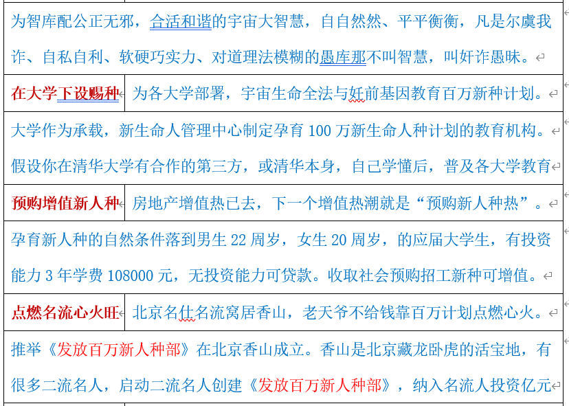 根据中国职业教育法与(国家人口发展规划 (rlly.cn))创建《妊前基因教育换种机构》宇宙主宰要用新生命更换人种,中央提出:素质教育不约而同的指向宇宙原基因教育,实施培育百万新人种计划。为缓解2023年毕业1158万人的就业压力,启动换百万新人种的,世界和平大业。