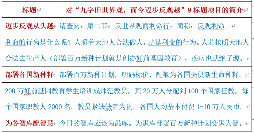第一编:部署百万新种计划:简称:百万新种。前言。古今中外大道千古全人类都囿于九字旧世界观,而今迈步反向越。宇宙部署各国家、各智库、各大学、各社区、各康养提高自我的精神素质、生命能量与神圣格位。引爆公平经济、点燃名流饥渴慕义的渴望,启动妊前基因九九机制,创建爱合能量团,实施部署百万新种计划。