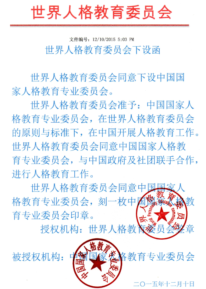 中国国家人格意识软件在线教育平台与二O一五年十二月十日在北京上线