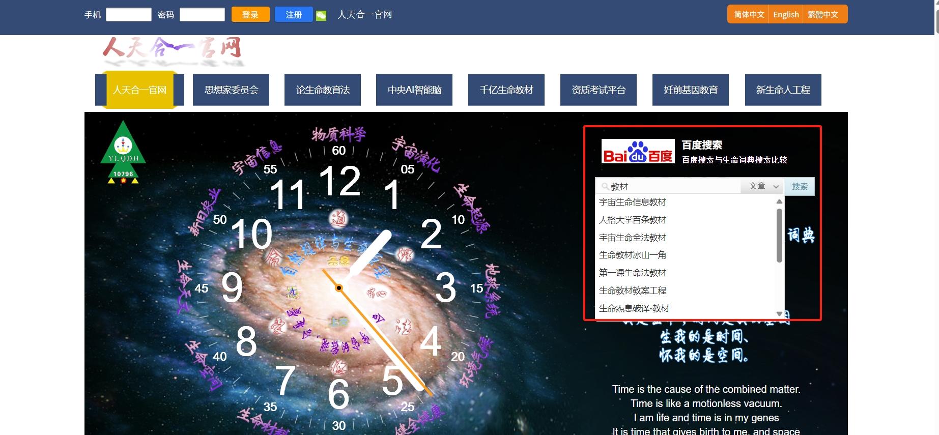 历史至今人类割断了生命源头,对道法理德爱合模糊不清,从而导致寡理无理。全球思想家委员会的《论·生命》接通了宇宙生命的源泉再现道理法德爱合的活力。