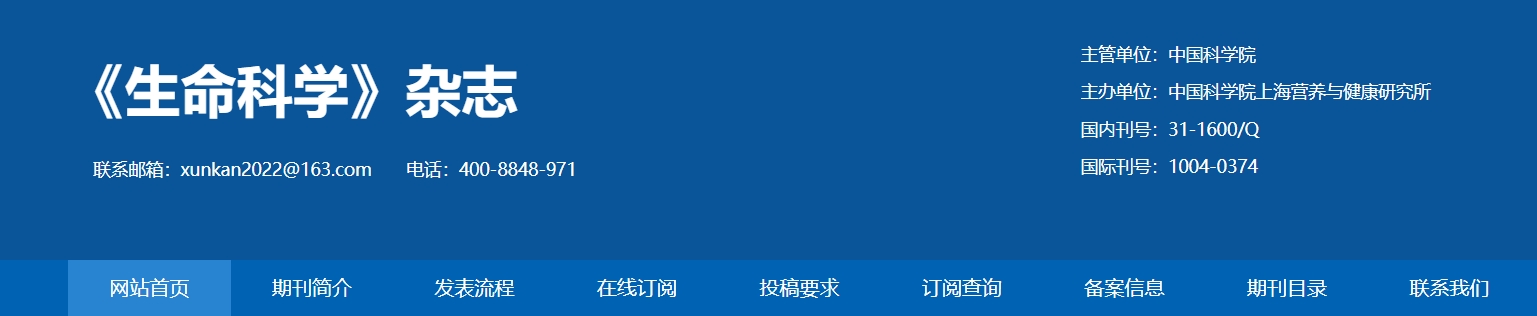 《生命科学》杂志创办于1989,影响因子0.54,统计源期刊CSCD期刊,国家自然科学基金委员会生命科学部;中国科学院生命科学与生物技术局;中国科学院生命科学和医学学部;中国科学院...