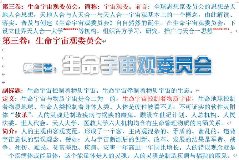 生命的总控制权属性与原理是什么?生命宇宙观委员会中写道: