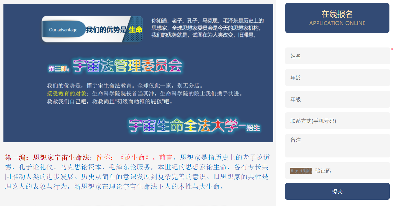 生命法、天地人合法、宇宙观、宇宙生命全法大学、宇宙意识世界大学的总根基都遵循“自然规律与生命原理”,归根结底就是有神论与无神论,伟大的中国共产党是有神论。