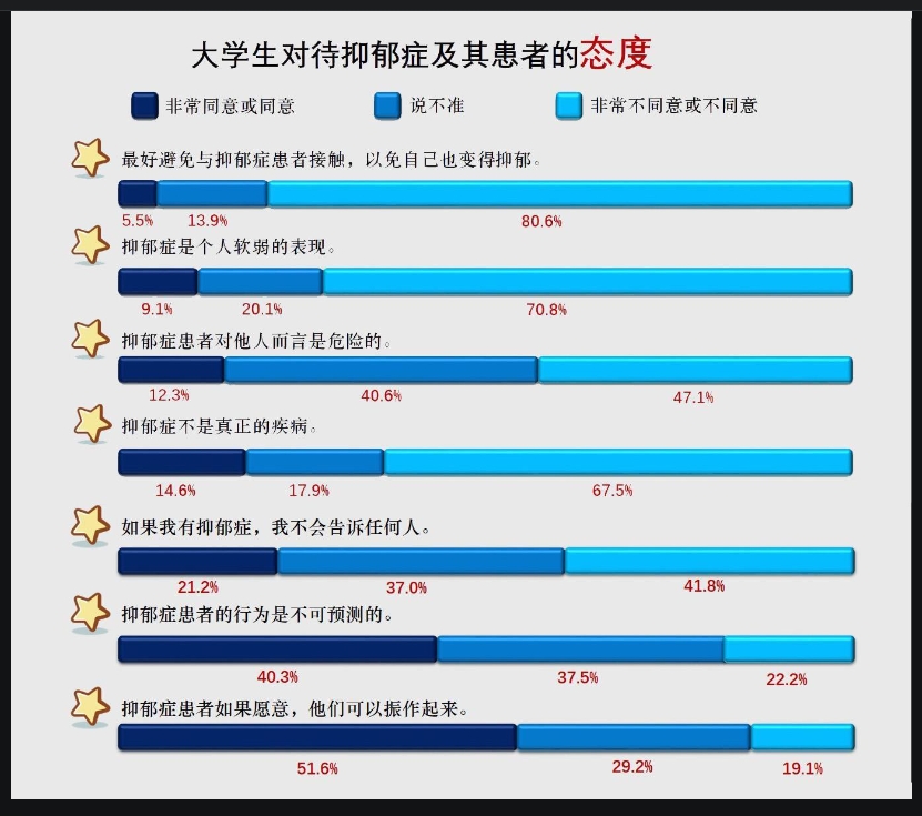 临床上常根据症状的数量、类型及严重程度将抑郁障碍分为轻度、中度和重度。
