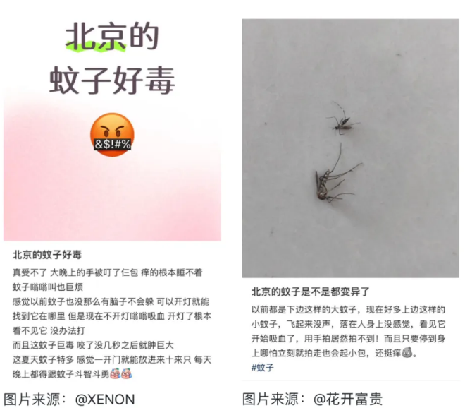 一位生活在北京西城的居民说,“今年明显感觉蚊子不仅多且凶,以前用的驱蚊喷雾,无论是六神还是日本产的那种微毒的,都不管用了,我还想问问,蚊子是不是又进化了?”