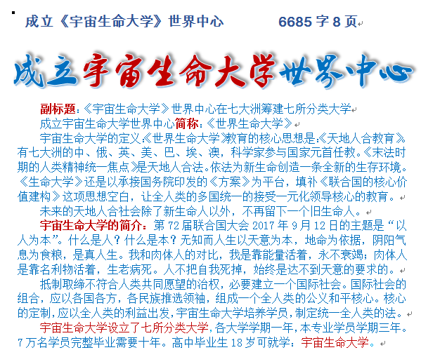创建《宇宙生命全法大学》势在必行。望,各生命科学机构,我们携手共进,互补短长。