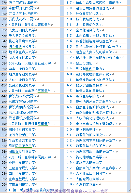 新生命人教育工程下设十所天学。《天地人合内改工程》