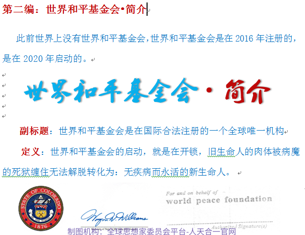 第二编:世界和平基金会•简介:此前世界上没有世界和平基金会,世界和平基金会是2016年注册、2020年10月份启动、2021年1月1日诞生。