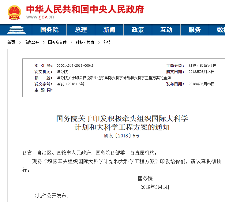 积极提出并牵头组织国际大科学计划和大科学工程是党中央、国务院作出的重大决策部署。为做好组织实施工作,制定本方案。