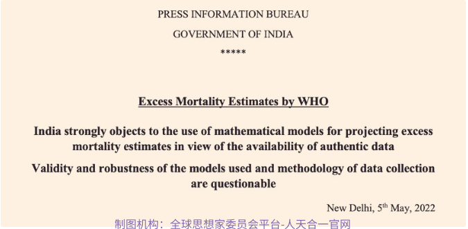 印度卫生和家庭福利部5日发布声明称:“印度一直反对世卫组织采用的基于数学模型预测超额死亡估值的方法。尽管有反对意见,但世卫组织仍在没有充分解决印度担忧的情况下发布了超额死亡估值。”