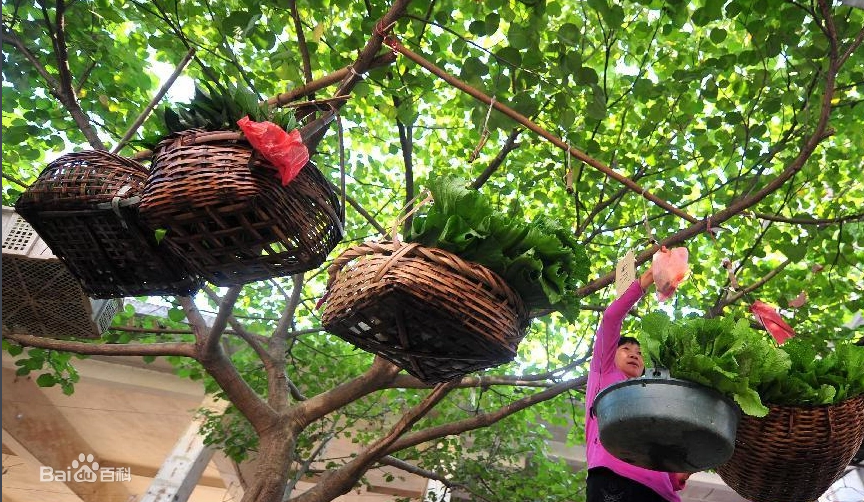 摆摊无人管,买菜自己拿,从来无赖账。这样的小摊在全国虽不是绝无仅有,但也为数不多,而且这一现象至今已经持续了七八十年。在广西南宁市横县百合镇罗凤村,只见在村口的一棵水榕树下,一根竹竿被水平固定在枝丫间,竹竿下挂着十个菜篮,里面用稻草扎好的青菜摆放整齐,篮子上方系着装钱用的小竹笼或塑料袋及纸片,纸片上写着“一把1元”或“一把2元”,摊前摊后不见摊主身影。