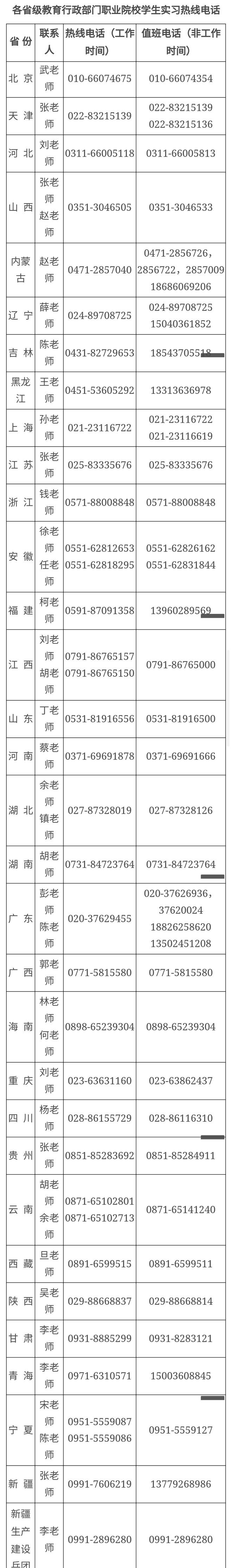 近日,教育部官网公布了教育部和各省级教育行政部门职业院校学生实习热线电话。