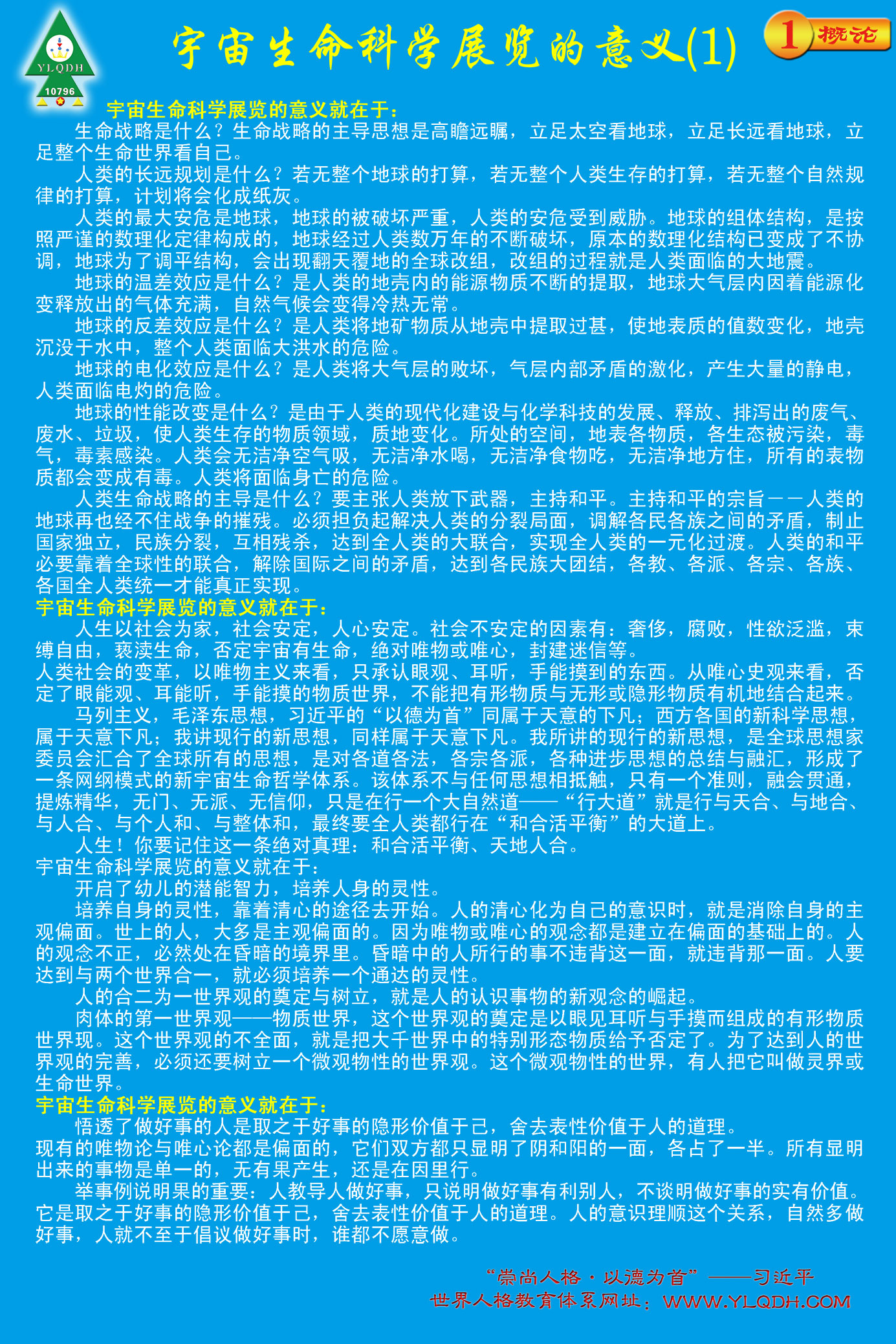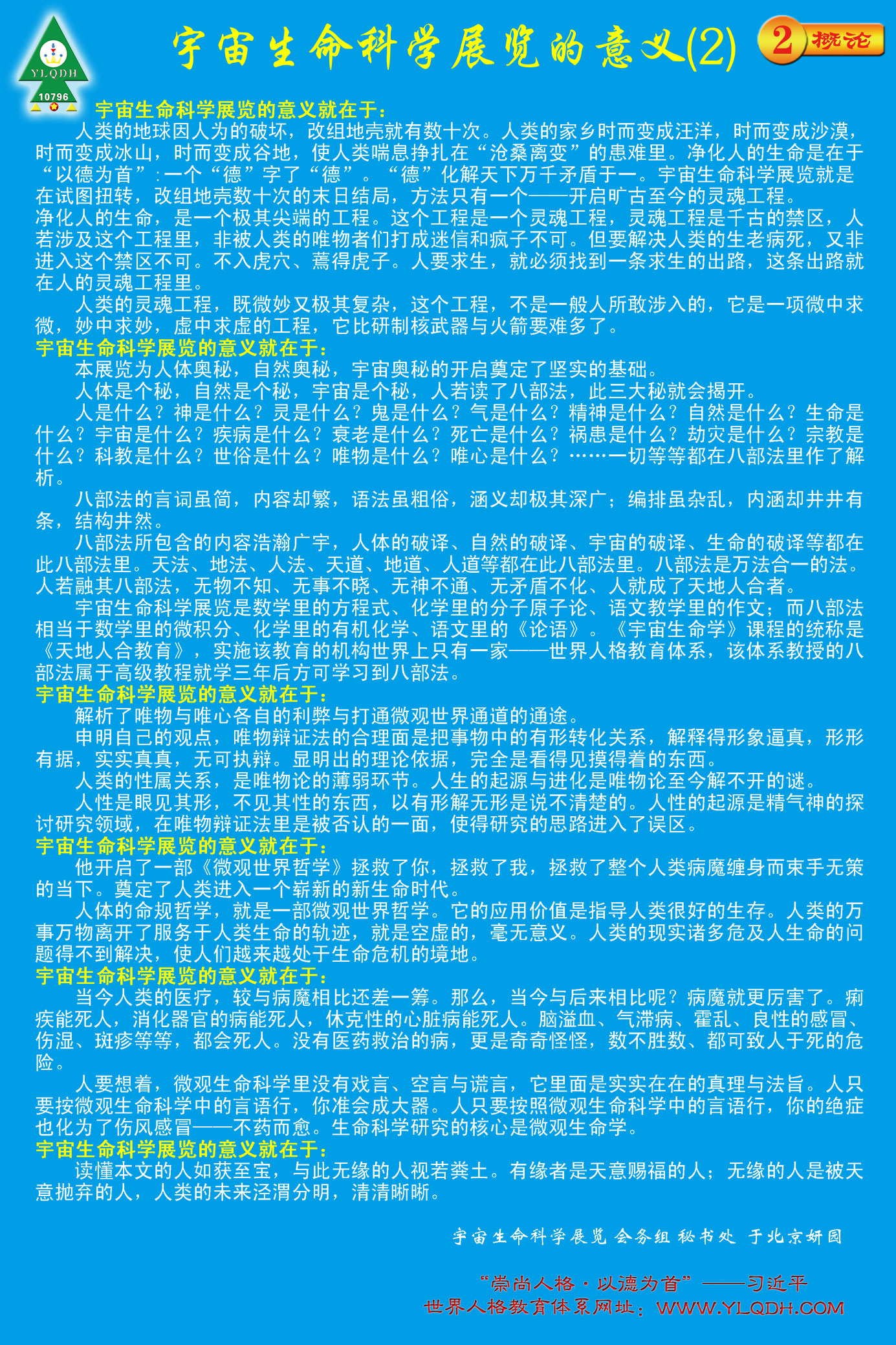 若人人皆入宇宙生命展馆,参悟正生命能量,则人人皆可充满能量、智慧、活力与知识,生机盎然。愚昧与疾病将无处安身,自会消失于无形。
