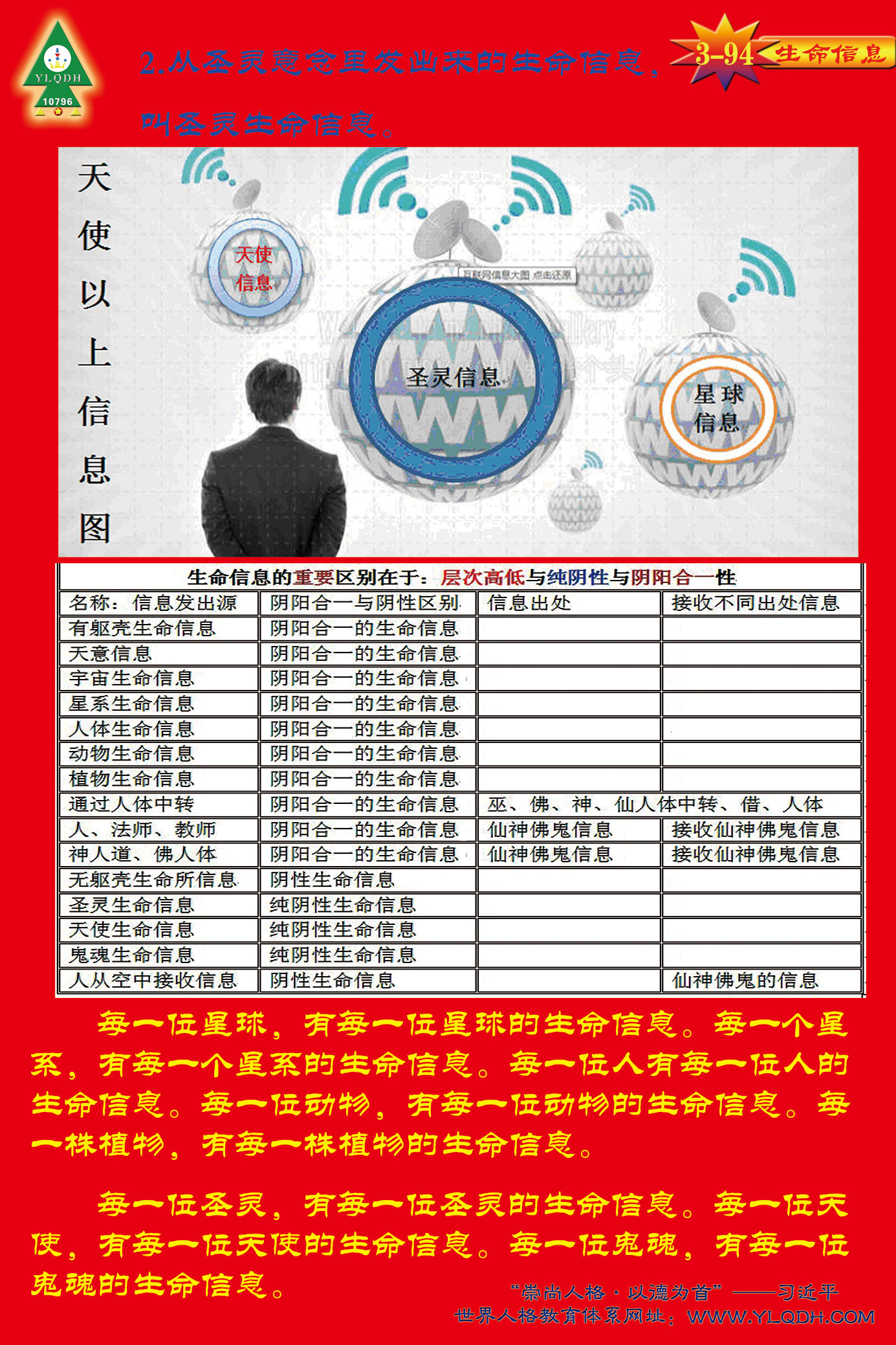 【5、生命展馆的格位,圣灵与宇宙的生命是一个整体,圣灵的格位是星球灵魂的格位,圣灵能量团大的有一个银河系那么大。圣灵是无名无姓无家谱,无位份,无脸面的灵。凡是有名位、格位、家谱的灵都不是圣灵。圣灵在人体上的作为是公义、正直、和气、善良、智慧。《贪官如何管理情妇》有名有钱有权可谓赫赫有名,肮脏龌龊。生命展馆思想崇尚,无名无姓无家谱,生命能量是统筹隐显两界的全能神。