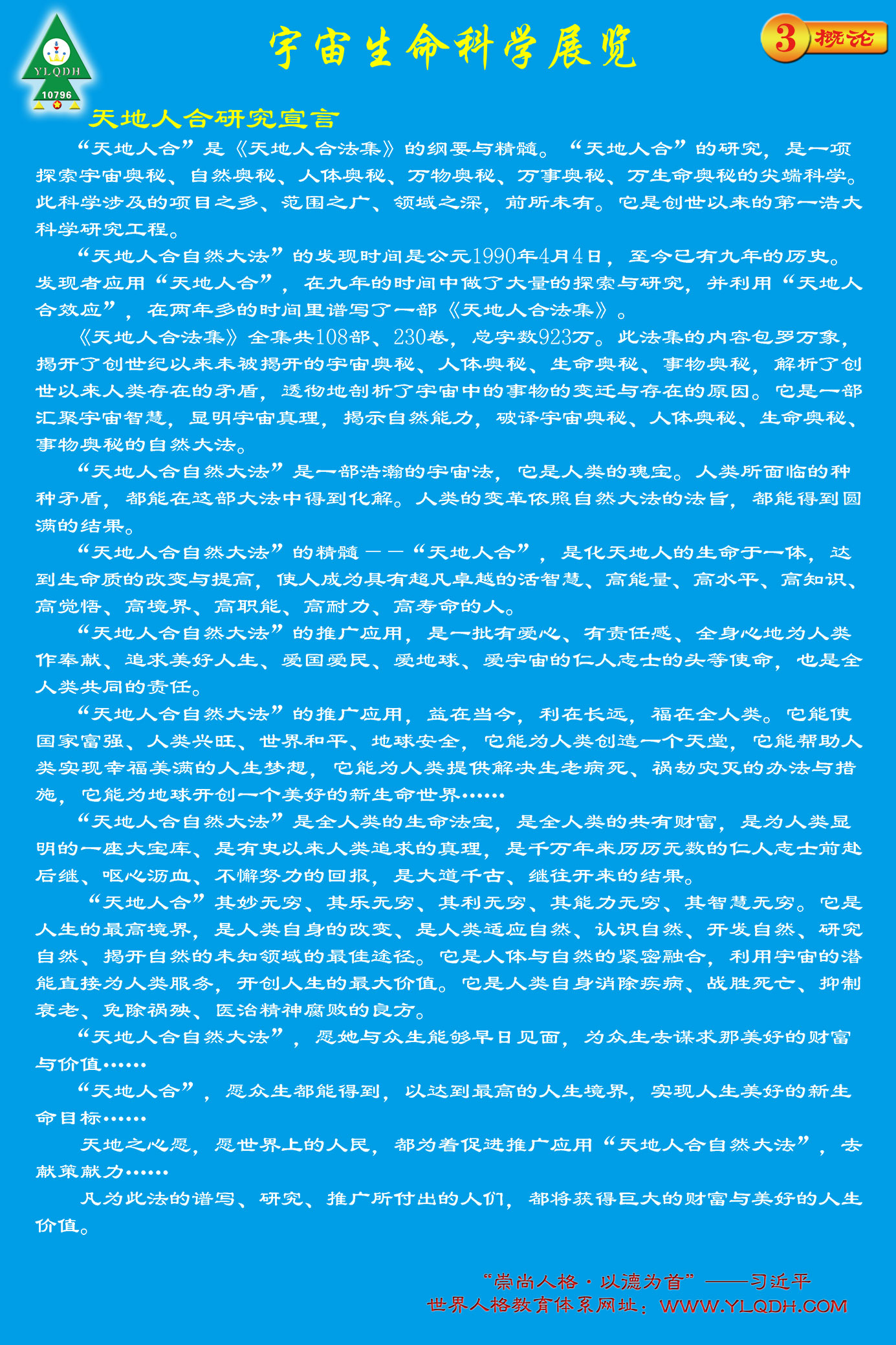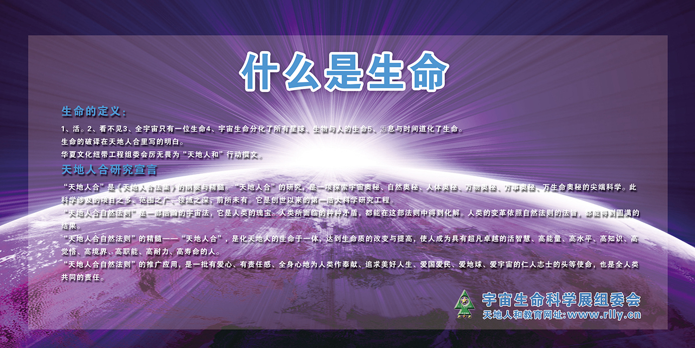 习近平主席推举的《天人合一宇宙观》就是在通过音、光、色、电、磁的宇宙生命科学展览形式,展示给全人类。