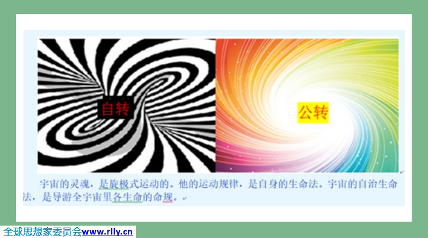 宇宙的灵魂,是旋极式运动的。他的运动规律,是自身的生命法。宇宙的自治生命法,是导游全宇宙里各生命的命规。