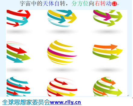 宇宙中的天体自转,分方位向右转动,使其自身显明宇宙灵魂的属性。宇宙灵魂的分化生命体。都有旋极运动的属性。各天体的旋极运动属性,是照着宇宙灵魂的意识而来的。