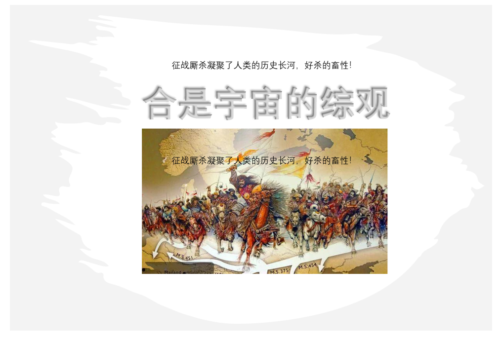 人类“合”的质量差,说明第一原因是无“合”网。无“合网”的原因是无“合纲”。无纲不成网,无网必乱规,乱规必乱轨,乱轨必乱撞 ,乱撞必生斗争, 斗争必生矛盾,生了矛盾,人类就没有安宁之日。