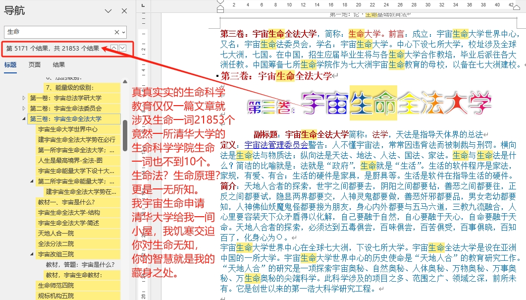 中国1000多家生命科学学院,对于生命法,生命原理是一无所知,尽然还堂而皇之的,自称为XXX大学生命科学学院院长,生命科学院士,法学院院长,法学院士,医学院院长,医学院士。