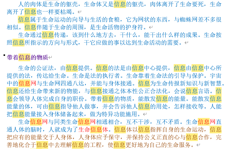 由于空间世界充满了千奇百怪的信息,而生命的运动是贯穿于这个世界的,各种信息根据生命的需要超生于人的身体。