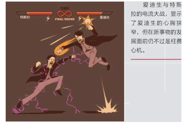 爱迪生虽然在科学事业和发明创造上可以说是一位优秀的人才,然而在做人方面却不算成功,他为了节约一点成本,就这样将一位天才推离了自己的掌控之中。但是也正是因为他的短见,给了特拉斯海阔天空的机会。在企业家乔治·威斯汀豪斯的支持下,特拉斯来到西屋公司开始了自己对交流电的研究。不久之后,能够实际应用的交流电发动机问世了,以其功率大、损耗小、传输距离长、变压简单的优点,很快地吸引了人们的眼球。