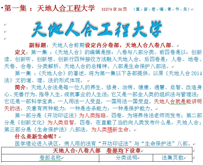 改变人内体的法,是天地人合法。天地人合法是天意启示人写的一部真法。此法的问世,启开了生命领域里的新生命工程。