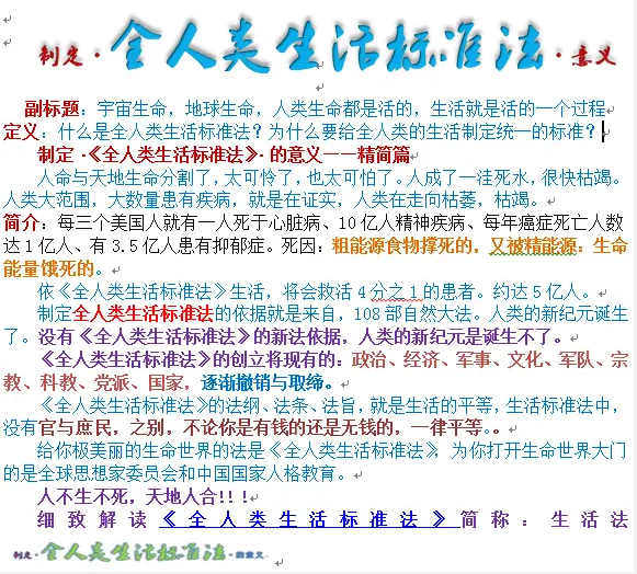 《全人类生活标准法》进入人类的政教合一,无生命科学做基础