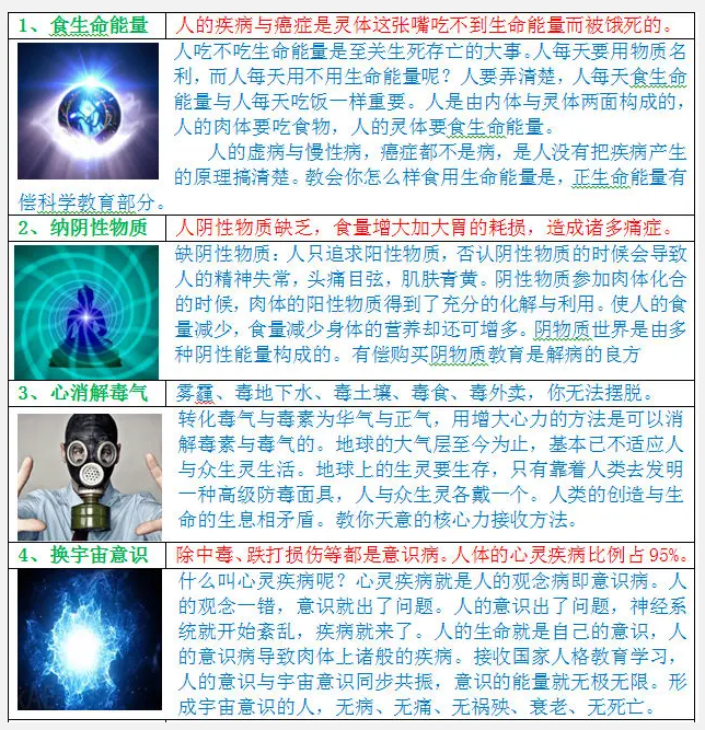 1、食生命能量2、阴性物质3、消解毒素毒气4、更换宇宙意识5、安装信息仪。
