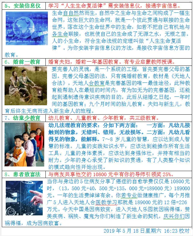 5、安装信息仪 6、婚前一教育 7、幼童少教育 8、患者致富法