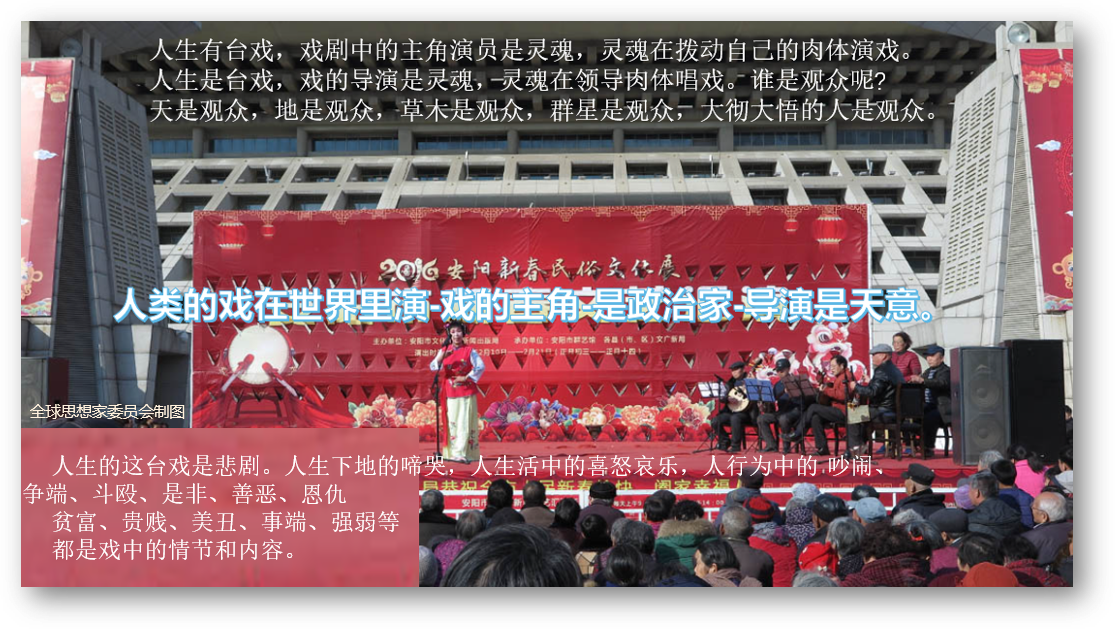人类的戏在世界里演,谁是戏的主角和导演呢?人类戏的主角是政治家们,导演是天意。